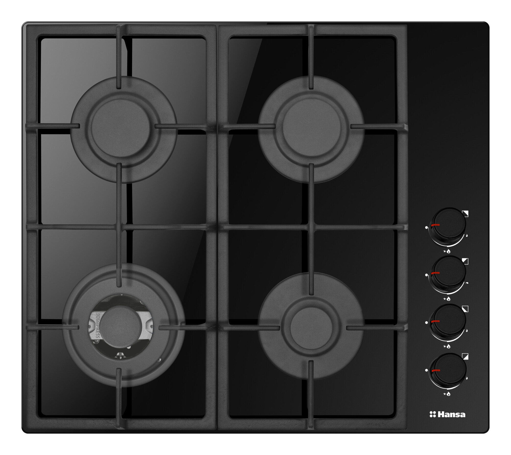 Жанарғының жоғарғы бөлігі ғана газ плитасының шыны бетінен жоғары. Бұл дизайнды айтарлықтай жақсартады және құрылғыны күтуді жеңілдетеді.