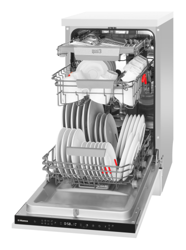 Ыдыстарыңызды ұқыпты ұстау және жуудың ең жақсы тиімділігі үшін тұз судың кермектігіне байланысты автоматты түрде бөлінеді. Егер тұз жеткіліксіз болса – электрондық сенсорлық бергіштер мұны бірден анықтайды.