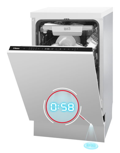 Сіз үшін ыңғайлы уақытта, тіпті 24 сағаттан кейін машинаны тиісті іске қосу уақытын таңдаңыз. Енді сіз электр энергиясының тарифтері төмен кезде машинаны іске қоса аласыз және ыдысыңызды жууға кететін ақшаңызды үнемдей аласыз!
